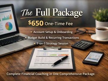 The Full Package combines all three steps of our financial coaching process into one complete, streamlined experience. From initial setup to final strategy, we handle everything so your financial system is fully built, reviewed, and ready for long-term success.