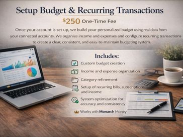 Once your account is set up, we build your personalized budget using real data from your connected accounts. We organize income and expenses and configure recurring transactions to create a clear, consistent, and easy-to-maintain budgeting system.